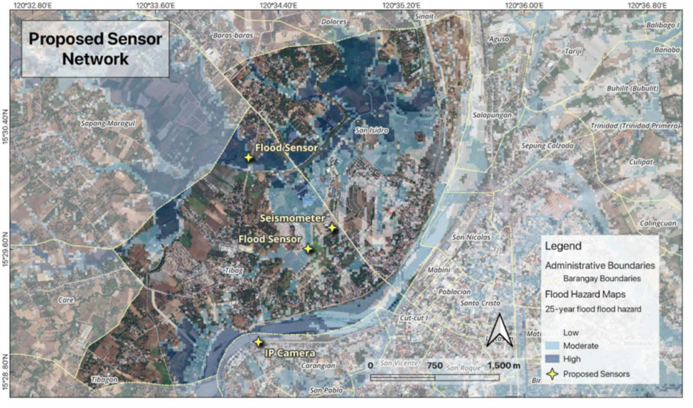 Based on the findings, the assessment proposed the installation of an Internet of Things (IoT)–enabled sensor network to strengthen early warning capabilities in both barangays. The proposed system includes flood sensors for creek monitoring, a CCTV camera for real-time river level observation, and a seismometer for earthquake detection. The system is being co-developed by PhilPrep partners, barangay officials, and local governments to support near real-time monitoring and more timely, data-driven warnings for flood-prone communities.