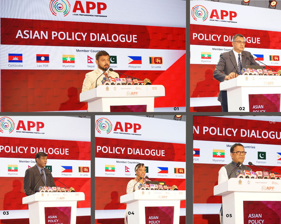 Figure:1 Dignitaries at the opening of Asian Policy Dialogue 01: Hon. Arun Hemachandra, Deputy Minister of Foreign Affairs and Foreign Employment, Government of Sri Lanka 02: Air Vice Marshal Sampath Thuyacontha (Retd) WWV, RWP and two Bars, RSP and Bar, USP, MMSc (Strat Stu- China), MSc (Def Stu) in Mgt, MSc (Def & Strat Stu), fndu (China), psc 03: Major General (Retd) Sampath Kotuwegoda ndc IG, Director General, Disaster Management Centre (DMC), Sri Lanka 04: Dr. Valerie Bemo, Head of Emergency Response Team, Gates Foundation 05: Mr. Aslam Perwaiz, Executive Director, Asian Disaster Preparedness Center (ADPC) Dr. Valerie Bemo, Head of Emergency Response Team, Gates Foundation Dr. Valerie Bemo, Head of Emergency Response Team, Gates Foundation |