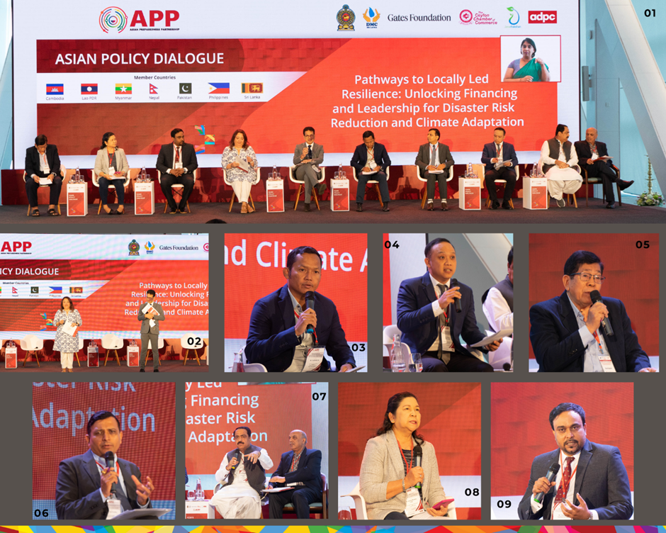 The Asian Policy Dialogue on “Pathways to Locally Led Resilience: Unlocking Financing and Leadership for Disaster Risk Reduction and Climate Adaptation” was held on 25th July 2025 at the Cinnamon Life at City of Dreams, Colombo, Sri Lanka. The high-level regional peer-learning and knowledge-exchange event was jointly organised by the Asian Preparedness Partnership (APP), a flagship initiative of the Asian Disaster Preparedness Center (ADPC) and the Sri Lanka Preparedness Partnership (SLPP), co-chaired by the Disaster Management Centre (DMC), Janathakshan GTE Ltd., and the Ceylon Chamber of Commerce. The event provided a common platform to over 120 participants, including senior government officials, representatives from civil society, leaders from the private sector, development partners, and delegates from Cambodia, Lao PDR, Myanmar, Nepal, Pakistan, the Philippines, and Sri Lanka to have a dialogue on unlocking the financing and leadership for disaster Risk Reduction and Climate Adaptation.